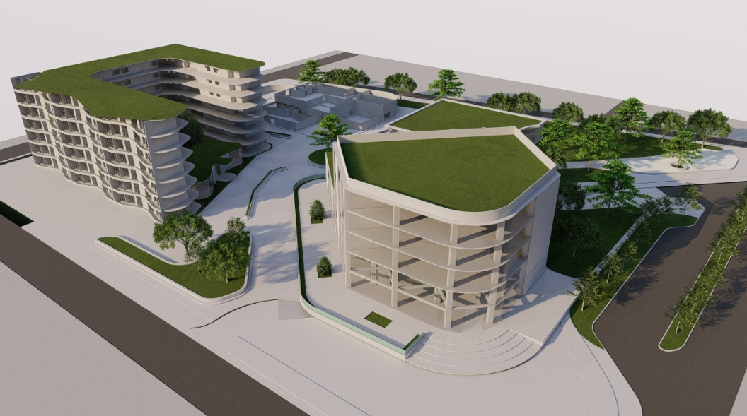 Como usos adicionales la edificación contará con: Comercial, Oficinas, Ludoteca y Clinicas. Con la incorporación de senderos y encaminamientos que nos permita conectar con nuestro alrededores y darle continuidad a las ciclo rutas existentes, también se incorpora el urbanismo táctico, para intervenir el espacio público y visualmente lograr conectarlo con nuestro proyecto.